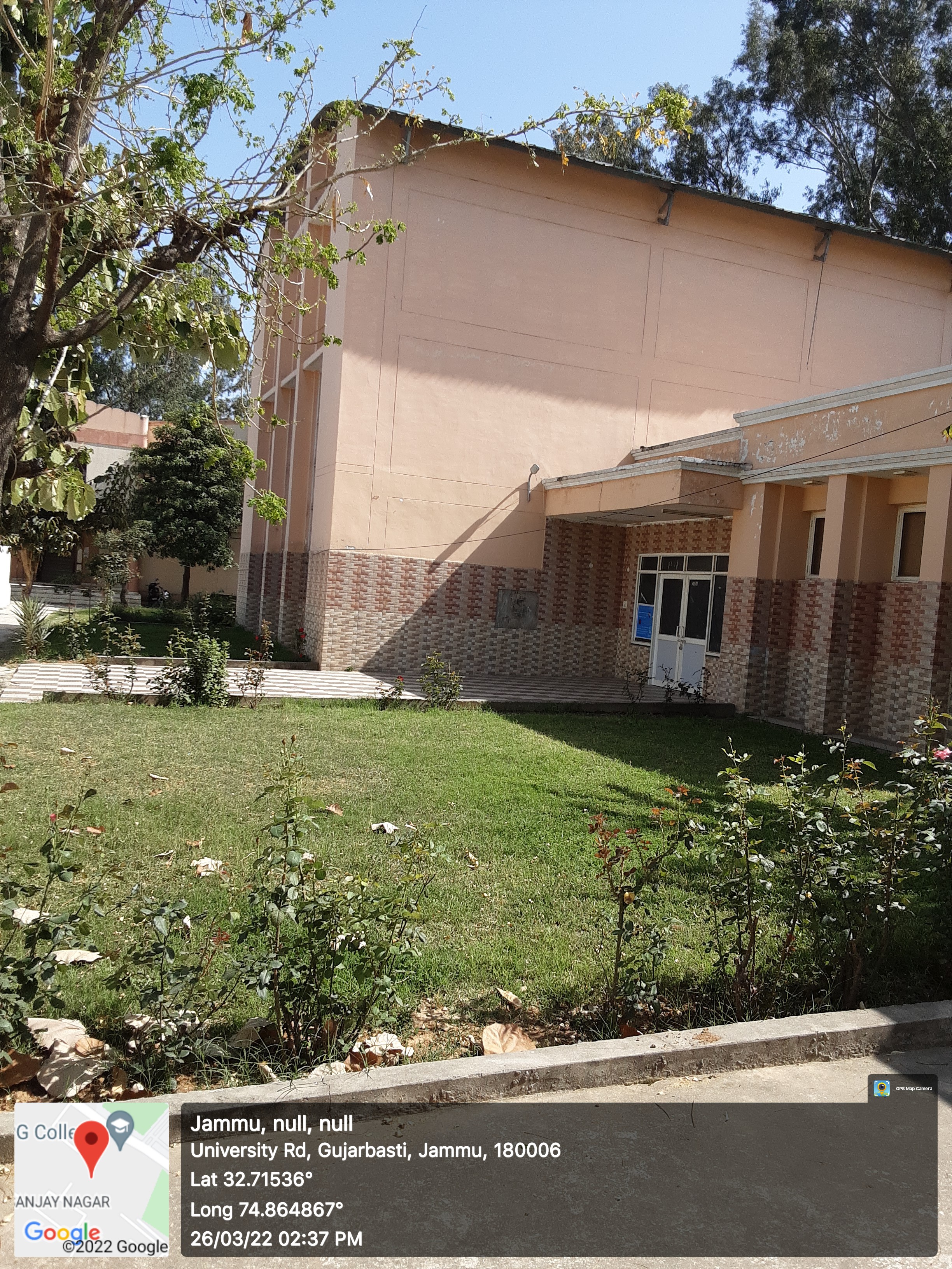 The topography of the College is exquisite as it is opposite to the University of Jammu on the bank of the river Tawi River and majestic Bahu fort in the back drop of Trikuta Hills over looking it.