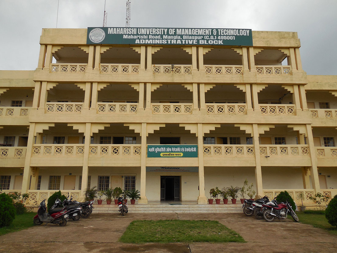 Maharishi University of Management and Technology (MUMT), Mangla, Bilaspur (C.G) is the First Private University in Bilaspur City and MUMT has created requisite infrastructure, Hostel Facility, Wi-Fi Campus, well equipped laboratory, and Eco-friendly campus with playgrounds.