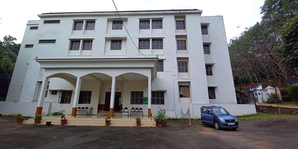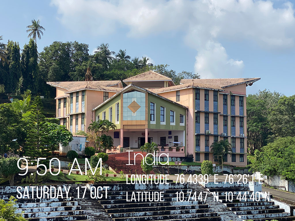 It is located on the northern slopes of Thiruvilwamala, which merges into the banks of the holy river Nila (Bharathapuzha). This undulating terrain of 40 acres with lush green vegetation is continuously swept and hugged by the gentle northern breeze that bring the purity, serenity to the college’s mission.