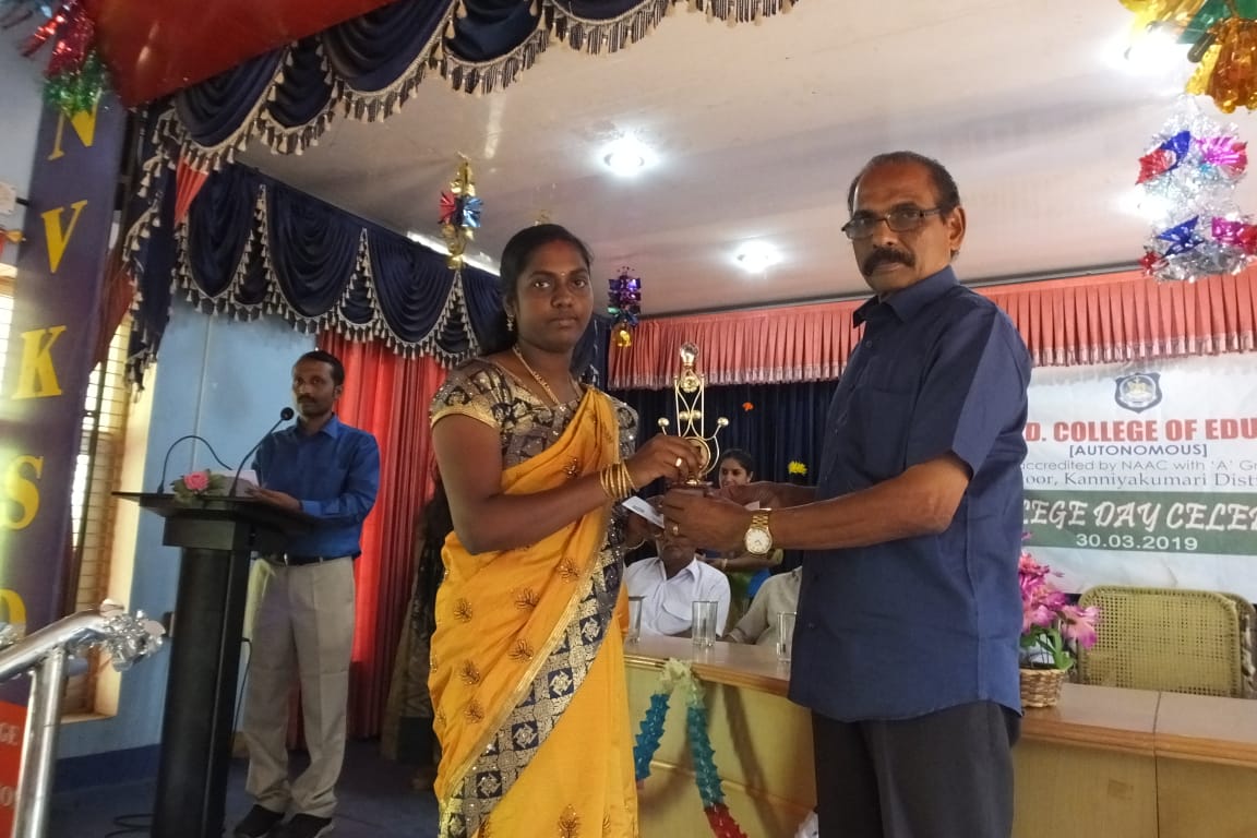 The N.V.K.S. Devaswom Committee with a clear mission and vision under the able leadership of the then President Sri. K.P. Rama Krishna Pillai decided in October 1961 to utilize the excess fund of the N.V.K.S. Devaswom trust for some social and educational purpose and as a result of that a teacher education institution was established a long felt need of Kanyakumari District.