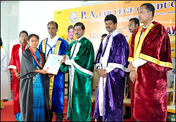P.A. College of Education is well governed by our prestigious and honorable Chairman. His keen observation and hard effort lead to produce wonderful future teachers. P.A. College of Education is affiliated with Tamil Nadu Teachers University, Chennai, and is approved by the National Council for Teacher Education (NCTE) [approval # F.SRO/NCTE/B.Ed.2006-2007/15239/22 Nov 2007]. Qualified and experienced teacher staff consistently plan and provide quality training to the students. The college offers the Bachelor of Education B.Ed., degree program of study to all qualified students, in the following optional : Tamil, English, Mathematics, Physical science, Biological Science and History, Computer Science, Commerce, Economics.