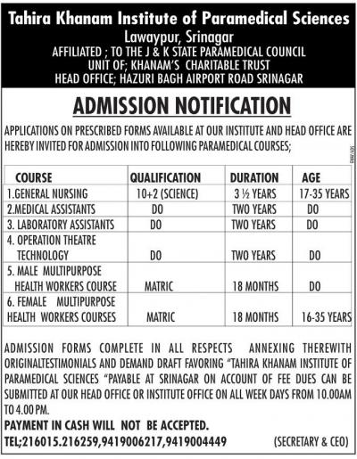 Tahira Khanams College of Education, Srinagar is one of the oldest and finest such a college in Kashmir.