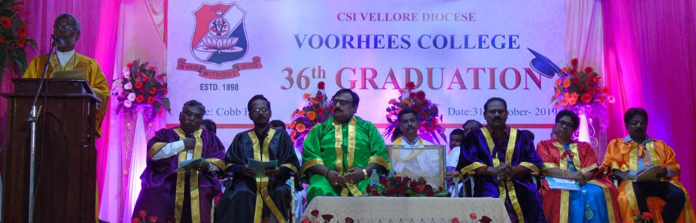 Voorhees College had its beginning in the year AD 1898 through the sacrificial efforts of the missionaries of American Arcot Mission (AAM), an offshoot of the Reformed Church of America. The original buildings of the college were built with the sacrificial donation of a large-minded American couple, Ralph and Elizabeth Rodman Voorhees. In memory of that ennobling act this college was appropriately named as Voorhees College. Rev Dr W I Chamberlain served as the First Principal of Voorhees College. Back in the 19th century, people in and around Vellore were struggling under the clutches of poverty, ignorance and spiritual backwardness. Missionaries of AAM, compelled by the love of Christ, started this citadel for higher learning. It is their vision that the students who are educated here would build their families, the society and consequently, the nation-at-large. Besides providing quality and affordable education, the college emphasizes the importance of Christian virtues and values. Many a student comes here from the rural areas of Vellore and nearby districts. It is interesting that many of our graduates turn out to be the first graduates in their respective families. Thus the college serves the needy ones of the society, providing a holistic education.