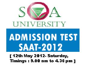 Application forms and Information Brochure for SAAT 2012 will be available from the Second Week of January, 2012. Candidates can download the admission form from the website and sent to the Registrar, SOA University. Also separate examination and personal interview will be conducted for Ph.D and separate forms can be downloaded. The entrance test will be conducted within Orissa and outside Orissa.