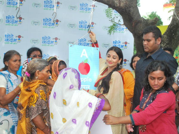 Vidya Balan, the brand ambassador of Nihar Naturals, was also present to do her bit, where she laid the foundations of an "abacus" for the village children. She encouraged the village women to take small, simple steps of progress towards ensuring their education.