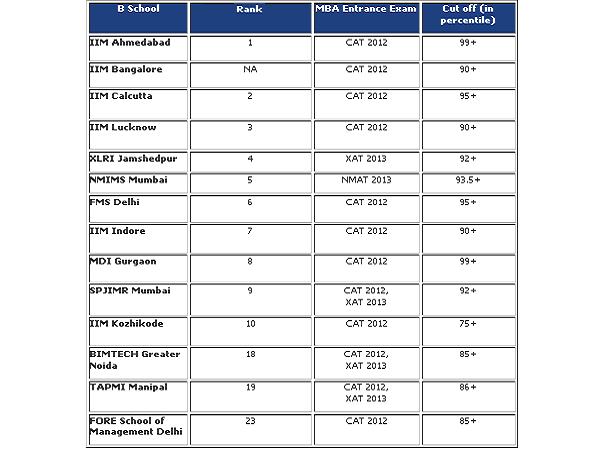 The top B Schools have cut-off of more than 95 percentile. So if you are able to getting a high score in CAT or MAT or XAT, you can apply to the apex B schools.