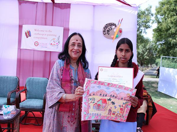 February 13: Over 1600 students from Tijara and nearby places spent a few wonderful hours at The Sagar School to take part in the- on- the spot- painting competition. The chief guest for the event was Padmashree Anjolie Ela Menon, renowned artist of international standing. The guest of honour was Ms. Preeti Jain who is an educational mentor and is associated with The Sagar School in the Heritage project.