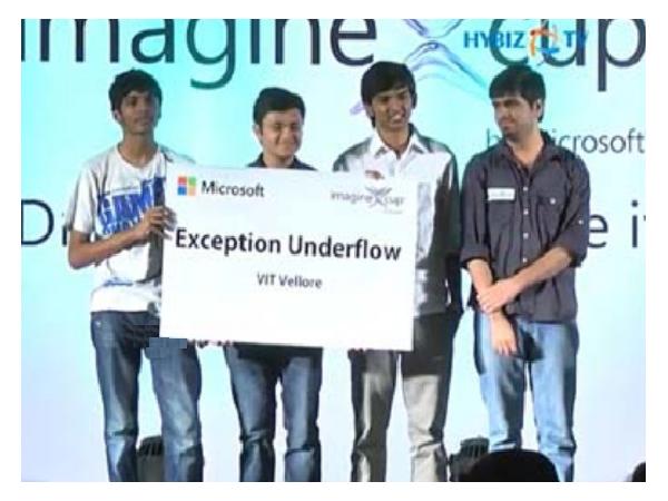 A team of four students from VIT university are placed Top 5 teams in Microsoft Imagine Cup 2013. The selected studnets are Shreyas Deshmukh, Vasu Mahesh, Abhishek Batra and Prince Shekhar Valluri.