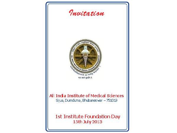 Odisha: All India Institute of Medical Sciences (AIIMS), Bhubaneswar is overjoyed to invite all for its First Foundation Day celebrated on 15th July, 2013.