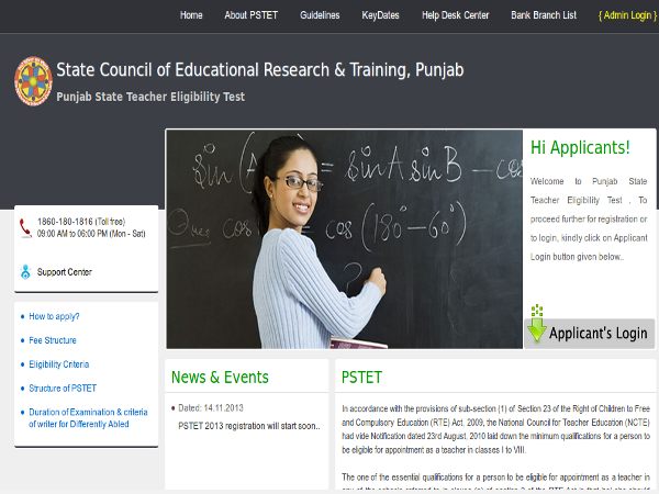 Application forms for PSTET 2013 is available in official website of SCERT.