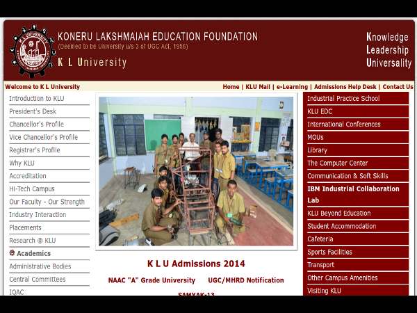 KL University, Vijayawada, invites applications for KLU Engineering Entrance Exam (KLUEEE 2014) for admission to the Bachelor of Technology (B.Tech) programmes, commencing in the session 2014.