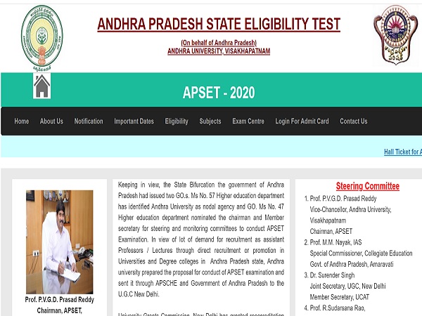| Exam | Andhra Pradesh State Eligibility Test (APSET) |