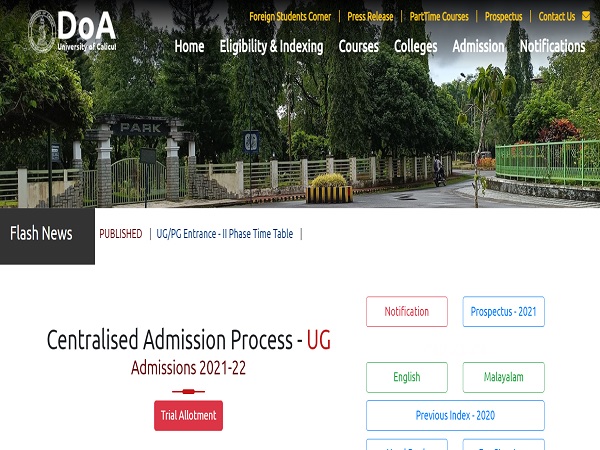 The University of Calicut has released the trial allotment for Undergraduate admission programmes for the academic year 2021-2022. The Calicut University trial allotment 2021 was released for the UG programmes in the affiliated Arts & Science Colleges of the University. Candidates who have registered for admission can check the Calicut University trial allotment 2021 on the official portal - admission.uoc.ac.in. One should enter their login details such as CAP ID and security code to download Calicut University trial allotment 2021. Students can make corrections till August 31. Check the Calicut University trial allotment 2021 link and other details below.
