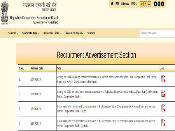 Candidates applying for Bank Assistants, Managers, Stenos, etc, posts through Cooperative Bank must submit their applications on the official RCRB website at http://rajcrb.rajasthan.gov.in/ on or before October 6, 2019.