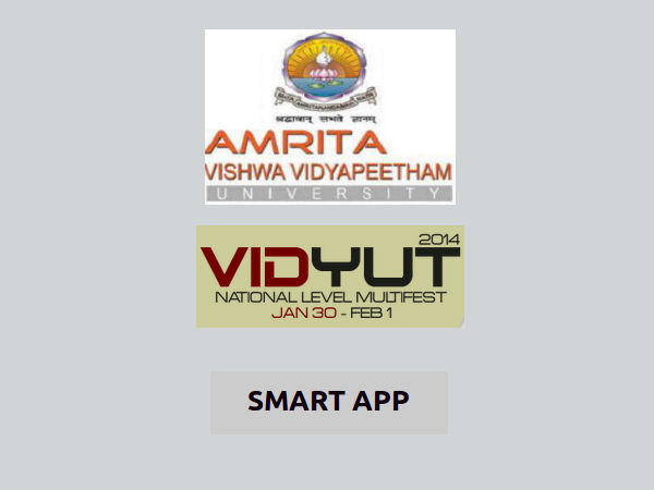 Vidyut national level multifest 2014, of Amrita University is providing an opportunity for students to take part in "Smart App" competition. Create an app which will aid the society and be rewarded.