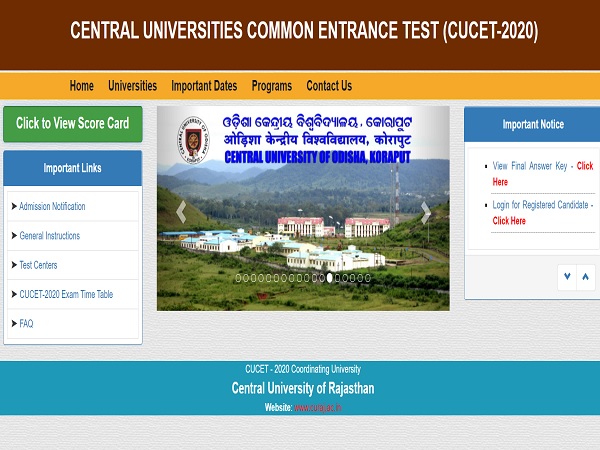 The Central University of Rajasthan has released the CUCET result 2020. Candidates who have appeared for the Central Universities Common Entrance Test (CUCET) 2020 exam can check their result at the official website- cucetexam.in. One should use their login credentials such as roll number and date of birth to check the CUCET results 2020. The University has released the CUCET result 2020 for three categories. One can download the CUCET score card 2020 and keep the hard copy for future need. Check the complete details about CUCET 2020 results.