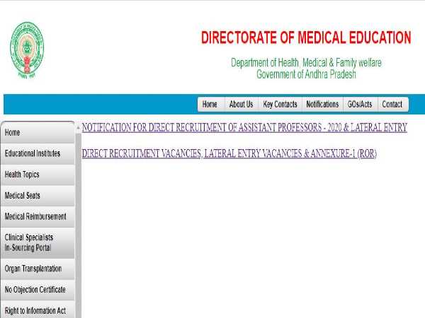 Read the detailed notification about DME AP Recruitment 2020 for Assistant Professors post here http://dme.ap.nic.in/ or check here