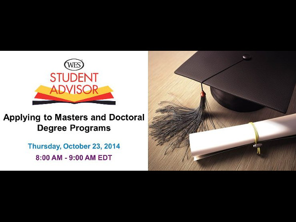 WES Student Advisor is hosting a free graduate admissions webinar titled: "Masters and Doctoral Degree Programs" on October 23, 2014.