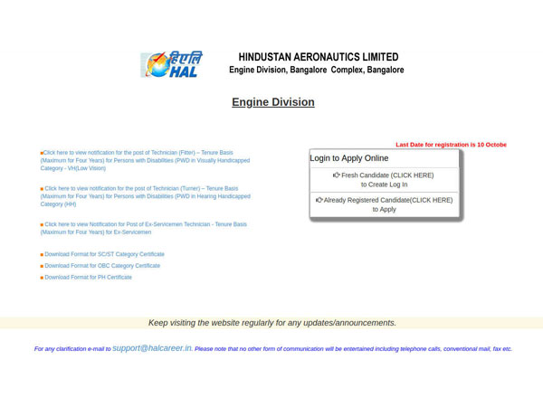 Log on to the HAL Career official website.