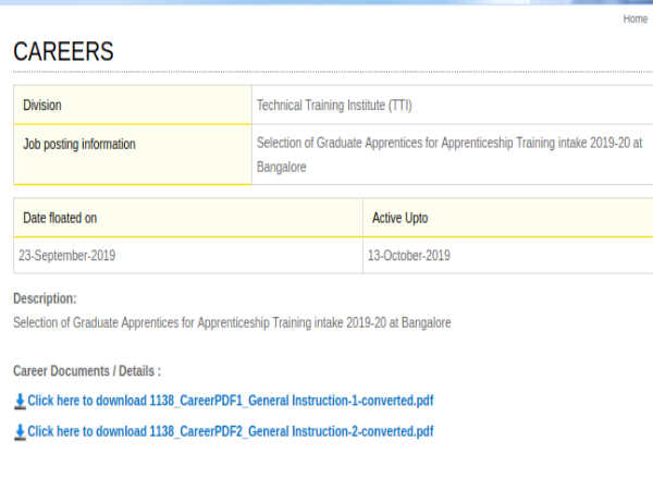 Candidates applying for the post of Graduate Apprentices through HAL Recruitment must register online on the MHRD NATS portal at http://www.mhrdnats.gov.in/ and submit there applications on or before October 13, 2019.