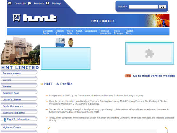 Step 1: Log on to the HMT Machine Tools Limited official website.