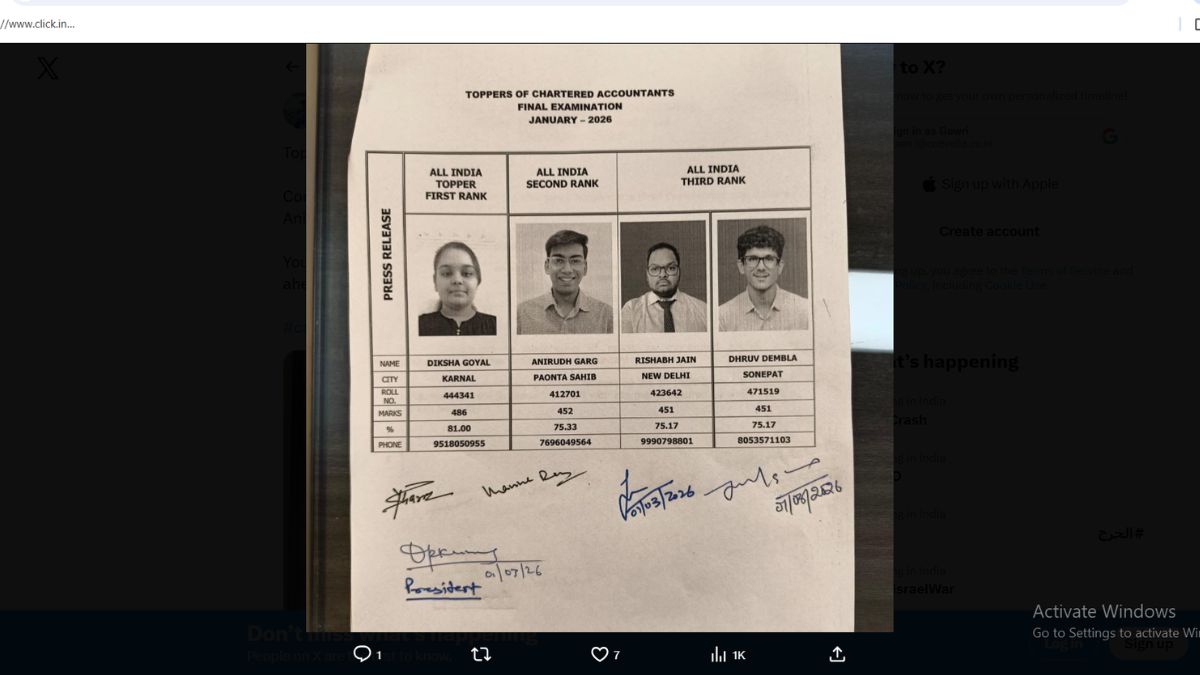 The ICAI CA Final January 2026 Toppers List has been officially announced along with the result declaration. The Institute of Chartered Accountants of India (ICAI) released the CA Final January 2026 results today on its official website icai.nic.in, bringing excitement and celebration among successful candidates across the country.