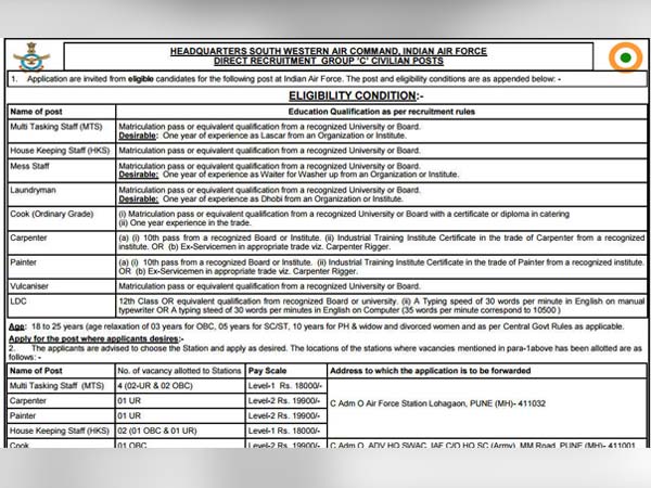 Go to the Indian Air Force advertisement. Read the details of the position carefully.