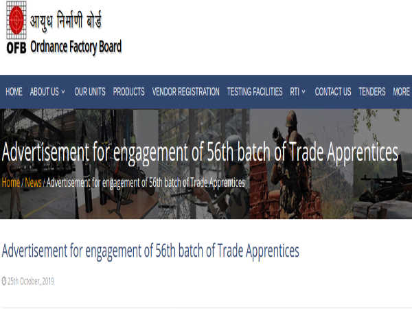 The Ordnance Factory Board (OFB), under the Ministry of Defence, Govt. of India, has invited online applications from eligible and interested Indian nationals for filling 4,805 Trade Apprentices post for ITI and Non-ITI categories through direct recruitment to be posted across all the Ordnance Factories in the Indian sub-continent. The application process towards the same started on October 30, 2019 and closes on December 30, 2019.