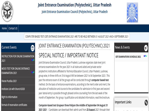 The UP Joint Entrance Examination 2021 is being conducted for admission in the first year and second year lateral entry to all state and aided and private sector polytechnic institutions affiliated to Technical Education Council, Uttar Pradesh.