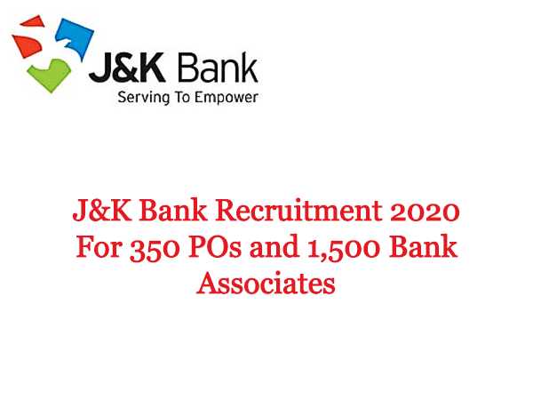 The Jammu & Kashmir Bank (J&K Bank) has invited online applications from qualified and interested Indian nationals domiciled in the UT of J&K for filling 1,850 Probationary Officers (PO) and Banking Associates (BA) post through direct recruitment. The application process towards the same starts from June 20, 2020 onwards and closes on June 30, 2020.