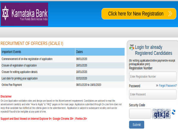 Candidates applying for Officers (Scale I) post through Karnataka Bank Careers must apply register and apply online on the official Karnataka Bank portal at https://ibpsonline.ibps.in/ktkbnpojan20/ and submit their applications on or before January 18, 2020.