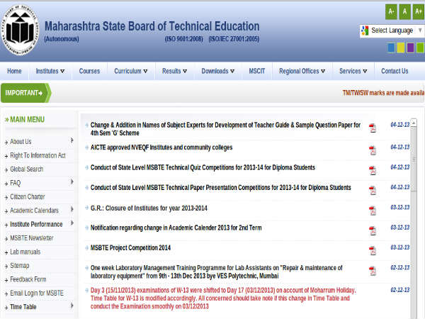 Maharashtra State Board Technical Education (MSBTE) will be declaring its results In January 2014. MSBTE conducted Winter Examination 2013 on 21 October to 29th November 2013.