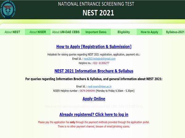 The National Institute of Science Education and Research (NISER) has postponed the NEST 2021 exam in view of the Coronavirus pandemic. Institute has deferred the National Entrance Screening Test (NEST) exam scheduled on June 14. The official sources suggest that the revised NEST 2021 exam date will be released soon. It has also extended the last date to apply online for the NEST 2021 exam. Interested candidates who have not yet registered for the NEST 2021 exam can register online till July 15, 2021. Candidates are advised to keep visiting the official portal for the latest updates.