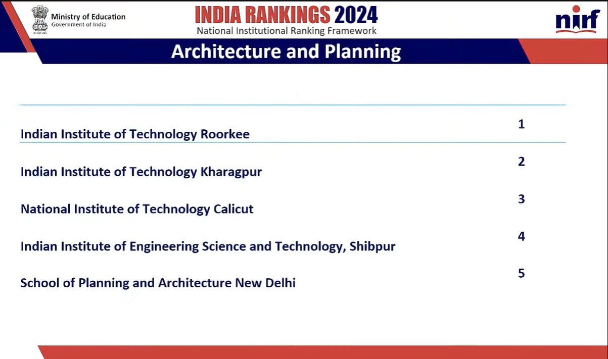 IIT Roorkee is at top for architecture category.