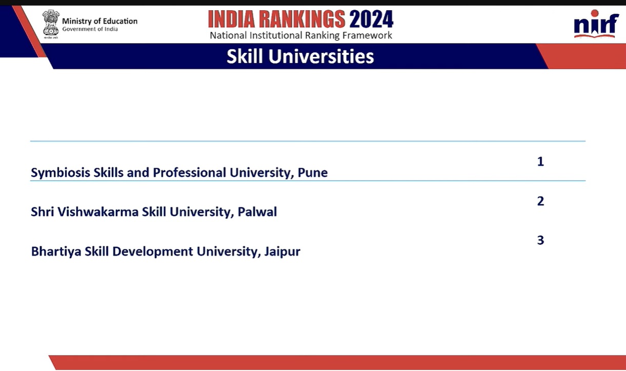 Symbiosis Skills and Professional University Oune is on the top of the rankings in Skill Category.