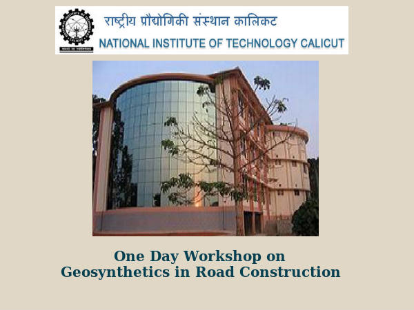 National Institute of Technology (NIT), Calicut, has announced a one day workshop on "Geosynthetics in Road Construction". The workshop is organised by the Department of Civil Engineering, NIT, Calicut.