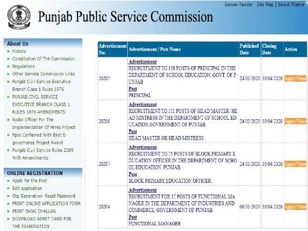 Candidates applying for the post of Principal, Head Master and BPEO through PPSC Recruitment 2020 must register online on the official PPSC website at https://ppsc.gov.in/ and submit their applications on or before April 30, 2020 at https://ppsc.gov.in/Advertisement/openadv.aspx?id=1