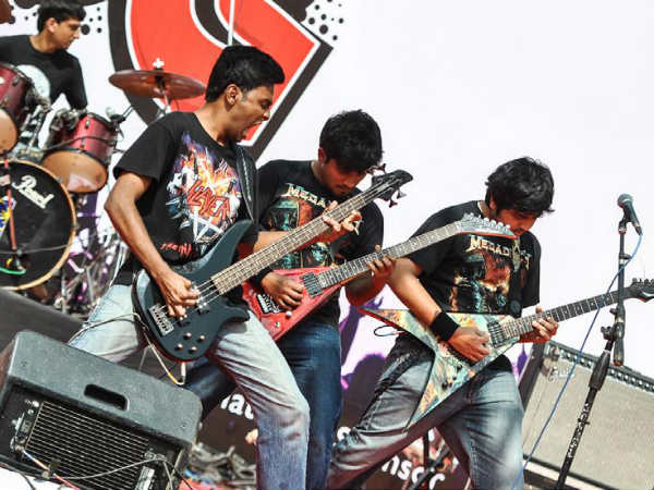 IISc Bangalore was witness to a remarkable exposition of contemporary music in the form of the event Battle of Bands. On the hot afternoon in the midst of the barren expanse that is the IISc cricket ground, 11 bands arrived to fight it out amongst themselves and enthral the audience with their music. And boy, did they manage to get the audience's attention. The event kicked off, after a lot of technical tinkering onstage, at 2 p.m., with Angstrum, to a slightly lethargic and hesitant, and limited audience. They played two songs and their bass and rhythm guitar work was commendable. The vocals, though were average. They made some noise, but drew only a little excitement from the crowd.