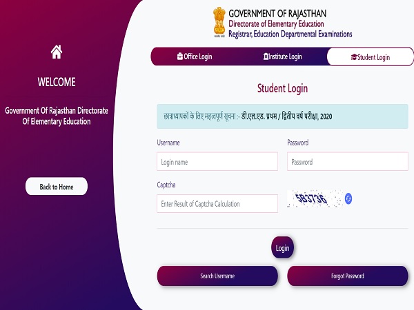 Department of Education, Rajasthan tweeted, "Today the examination result of Elementary Education Two Year Diploma First Year 2020 has been declared. Students can check the result by logging in with their ID on the Shala Darpan portal."
