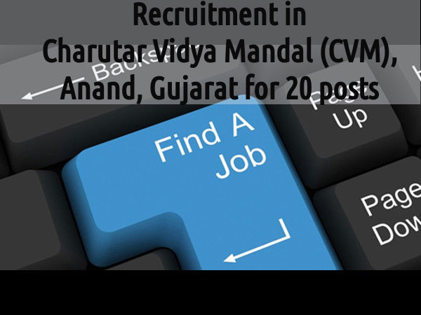 Charutar Vidya Mandal (CVM), Anand, Gujarat invited applications from eligible candidates for various posts at G. J. Patel Ayurveda College and Research Centre. The candidates eligible for the post may apply on or before 18 August 2015.