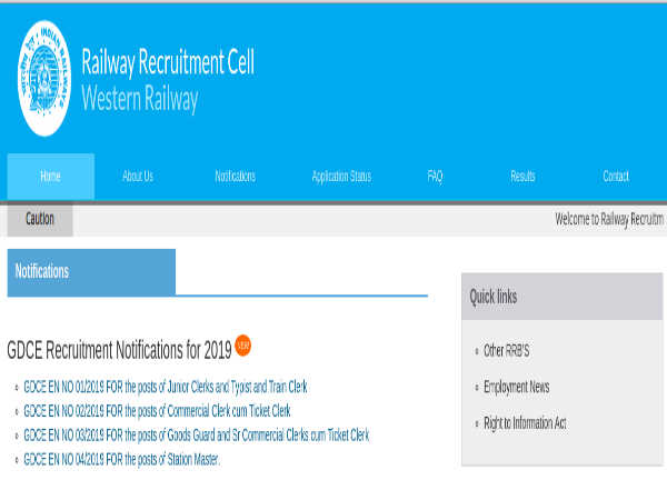 The Indian Railways, through RRC Western Railway, Mumbai, has called for online applications from eligible and interested candidates for filling 496 vacancies to the post of Junior Clerk Cum Typists, Trains Clerk, Commercial-cum-Ticket Clerks and and Station Masters through direct recruitment. The registration-cum-application process towards the same starts from July 01, 2019 and closes on July 30, 2019 by 6:00 pm.