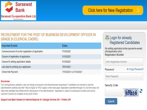 Candidates applying for Saraswat Bank Jobs 2021 through Saraswat Bank Recruitment 2021 must register online on the official Saraswat Bank website in Saraswat Bank Careers sections and submit their applications on or before March 31, 2021 as mentioned in the Saraswat Bank Notification 2021.