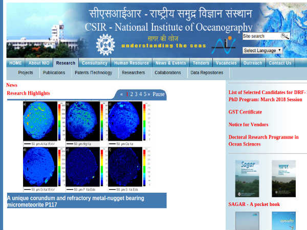 Log on to the National Institute of Oceanography official website.