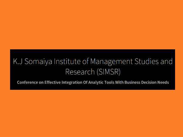 K.J Somaiya Institute of Management Studies and Research (SIMSR) announces dates for the conference on "Effective Integration Of Analytic Tools With Business Decision Needs".