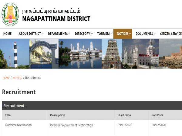 Download Tamil Nadu Nagapattinam Recruitment 2020 PDF Notification for Overseer