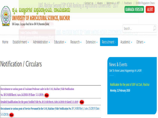 Read the detailed notification about UAS Raichur Recruitment for Assistant Professors here http://www.uasraichur.edu.in/images/RECRUITMENT/TEACHING/Notification_Teaching_Advt.14.pdf