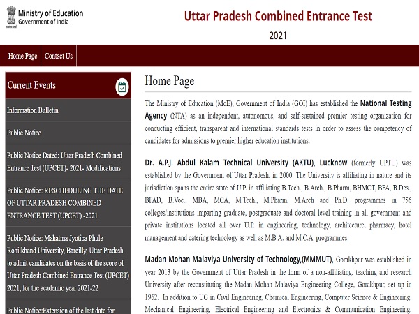 The National Testing Agency (NTA) has been vested with the responsibility of conducting the Uttar Pradesh Combined Entrance Test (UPCET). The UPCET is being conducted for admission to various courses offered by AKTU, MMMUT and HBTU as well as other specified Universities in Uttar Pradesh.