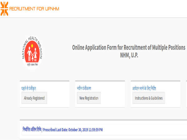 Candidates applying for various posts through UPNHM must register online on the official UPNHM website at https://upnhm.samshrm.com/ from October 10, 2019 and submit their applications on or before October 30, 2019 by 11:59 pm.