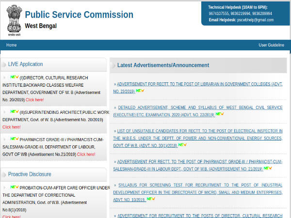 Interested candidates can visit the official site of WBPSC to register online for the post of Pharmacist. The last date to apply online is November 21, 2019.